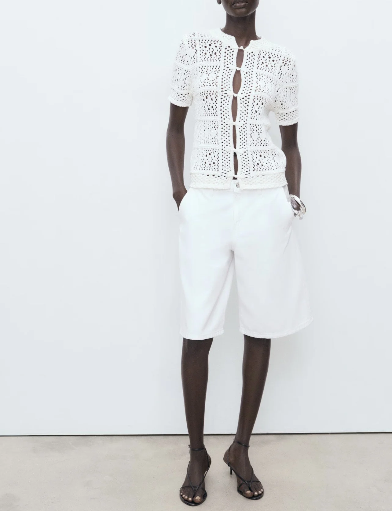 Crochet cardigans are back, but this Mango version feels grown-up with its structured square pattern and neat fastening. Worn buttoned-up with tailored shorts, it’s a nod to vintage charm; left open over a slip dress, it becomes the perfect layering piece for Malta’s cooler evenings by the sea.